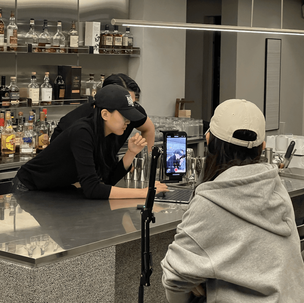 콘텐츠를 기획, 제작중인 최민서 (기획/마케팅), 김혜윤(브랜드 디자인), 구윤모(바텐더)